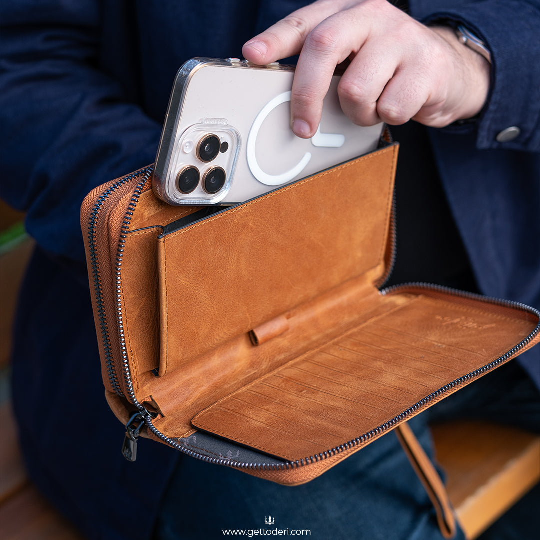 Luis Fermuarlı Telefon Hazneli Deri Cüzdan