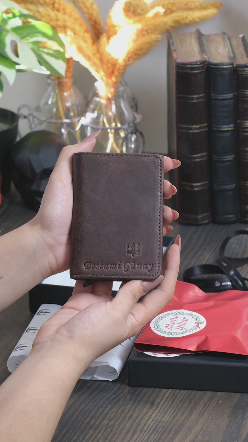 Moon Mekanizmalı Hakiki Deri Minimal Cüzdan