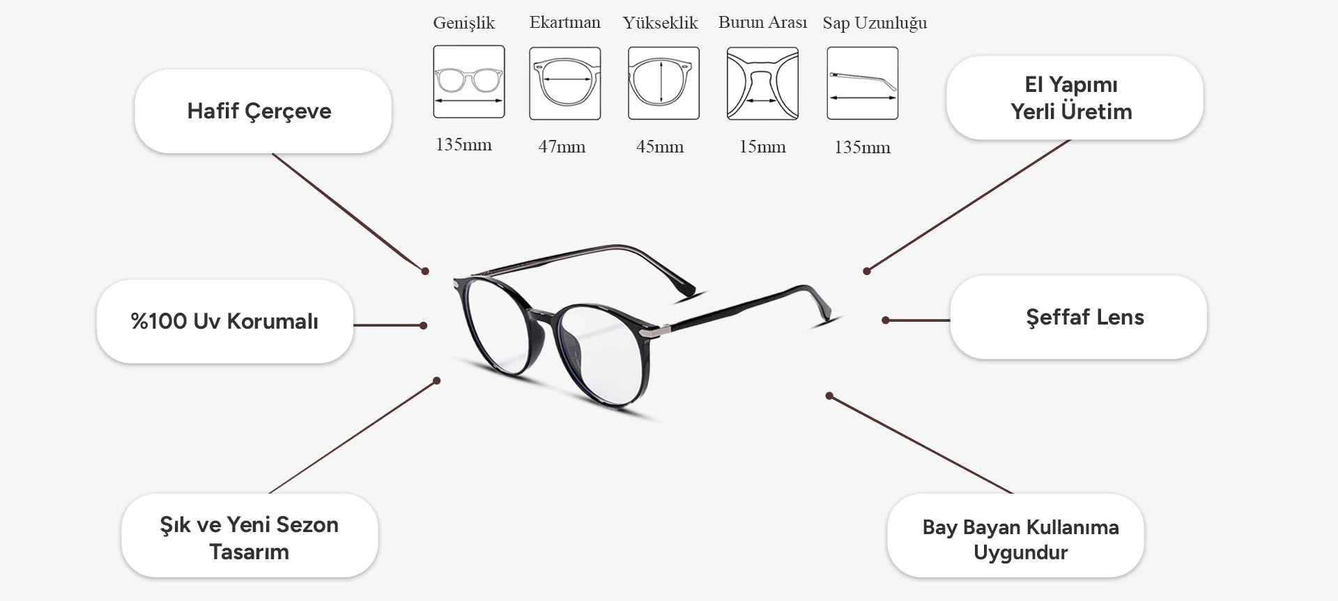 Şeffaf Lens : Doğal renkleri bozmadan gözlerinizi korur.
