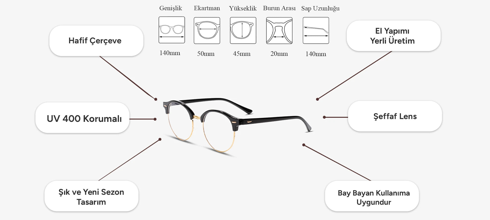 Şeffaf Lens : Doğal renkleri bozmadan gözlerinizi korur.
