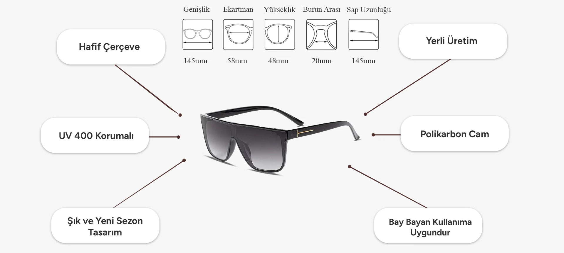 ✅ Tam Koruma: UV400 koruması sayesinde gözlerinizi zararlı UVA ve UVB ışınlarından maksimum seviyede korur. Güneşin zararlı etkilerini engelleyerek net ve konforlu bir görüş sunar.