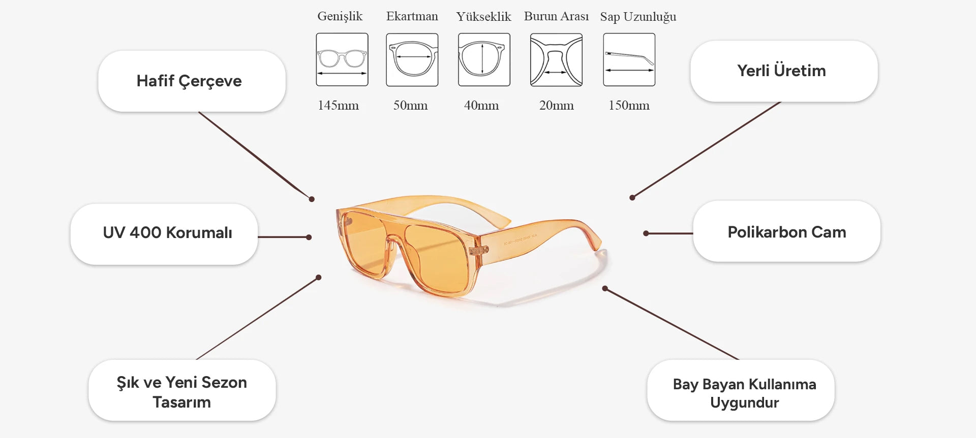 ✅ Tam Koruma: UV400 koruması sayesinde gözlerinizi zararlı UVA ve UVB ışınlarından maksimum seviyede korur. Güneşin zararlı etkilerini engelleyerek net ve konforlu bir görüş sunar.