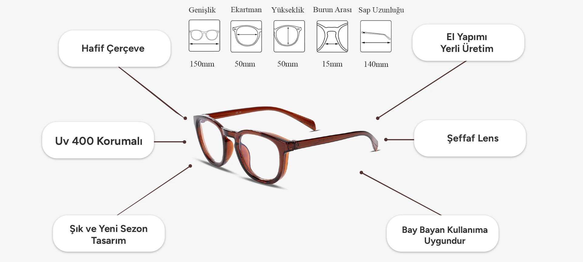 Şeffaf Lens : Doğal renkleri bozmadan gözlerinizi korur.