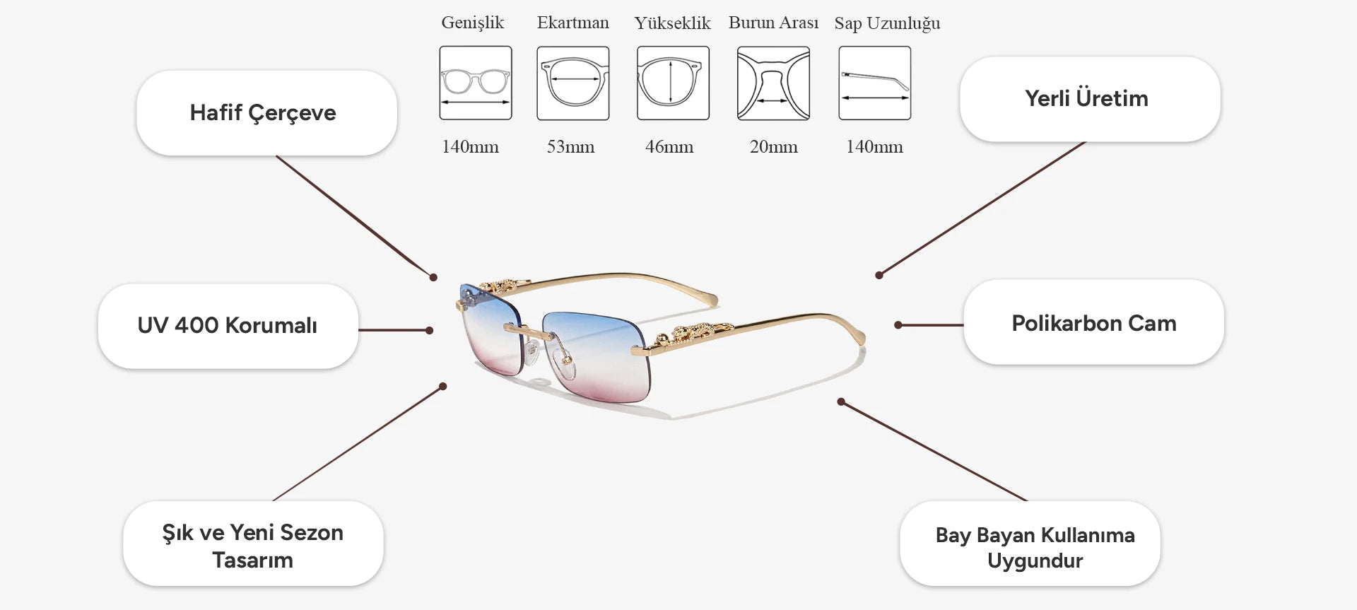 ✔ Tüm güneş gözlüklerimiz optikçilerde cam değişimine uygundur.