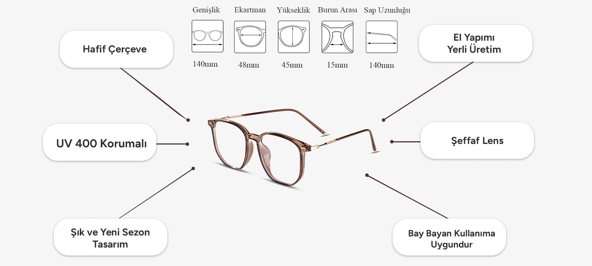 Şeffaf Lens : Doğal renkleri bozmadan gözlerinizi korur.