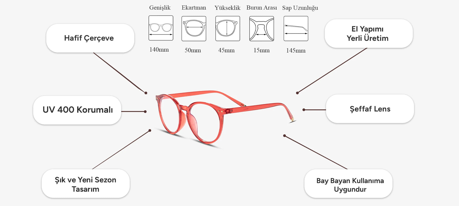 Şeffaf Lens : Doğal renkleri bozmadan gözlerinizi korur.